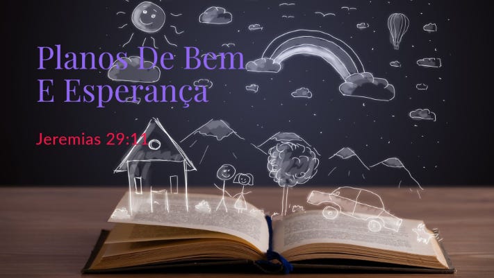 O Senhor disse: 'Eu Sou Aquele que sabe os planos que tenho a vosso respeito, planos de bem e não de mal, para vos dar um futuro com esperança.' (Jeremias 29:11)